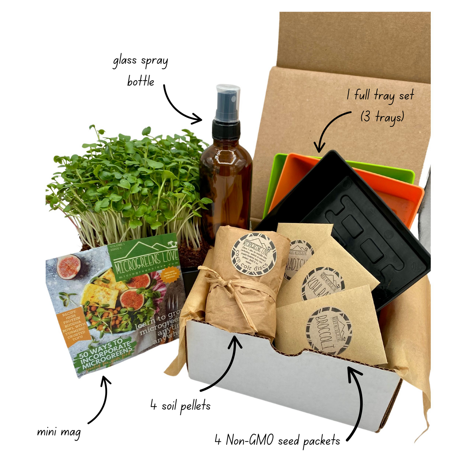 Learn to grow your own microgreens at home, year-round, using minimal space. Includes everything you need for four grow cycles.